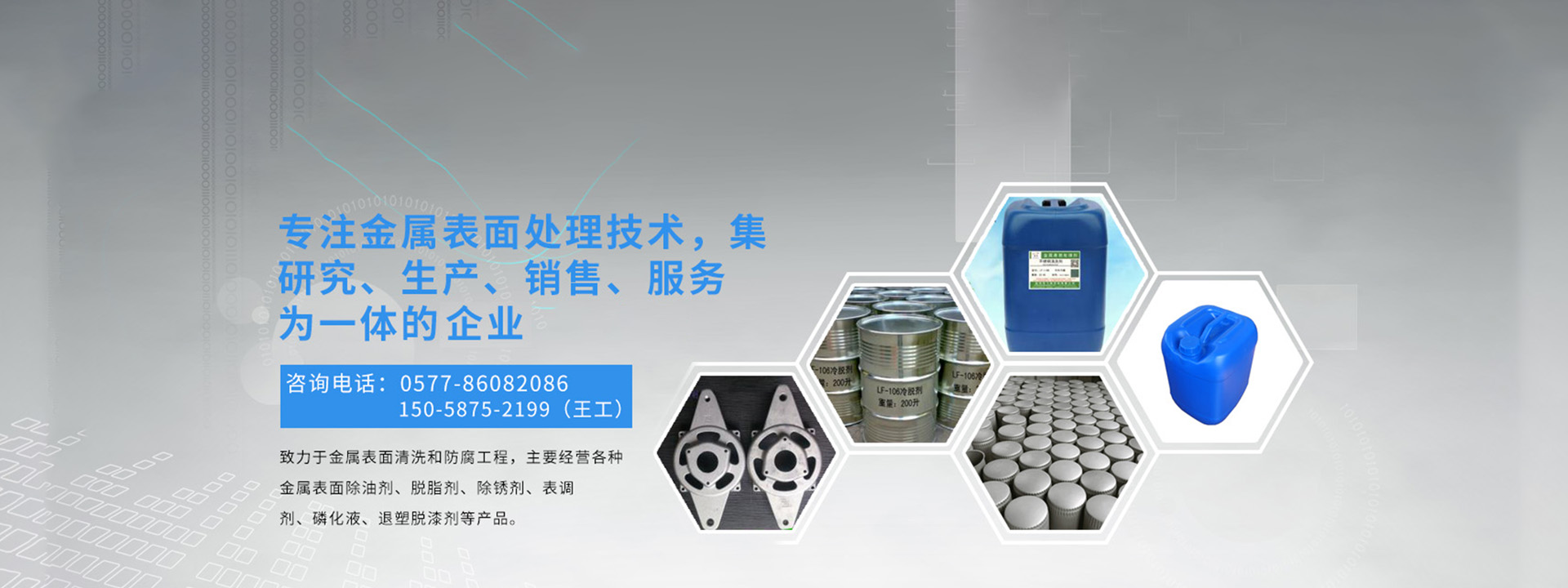 溫州龍飛環(huán)保科技有限公司是金屬表面處理技術集研究、生產、銷售、服務為一體的高新科技企業(yè),致力于金屬表面清洗和防腐工程,主要經營各種金屬表面除油劑、脫脂劑、除銹劑、表調劑、磷化液、退塑脫漆劑、除蠟水、防銹水防銹油、封閉劑、鈍化劑、發(fā)黑劑、著色劑、化學拋光劑、合成乳化劑、水處理劑等金屬表面處理劑,廣泛適用于產品的噴塑、噴漆、噴砂、電泳、電鍍前的表面處理以及表面終處理,現已涉通用機械零部件、汽摩配件、五金及電工工具、電器電腦、潔具閥門、教學儀器等。